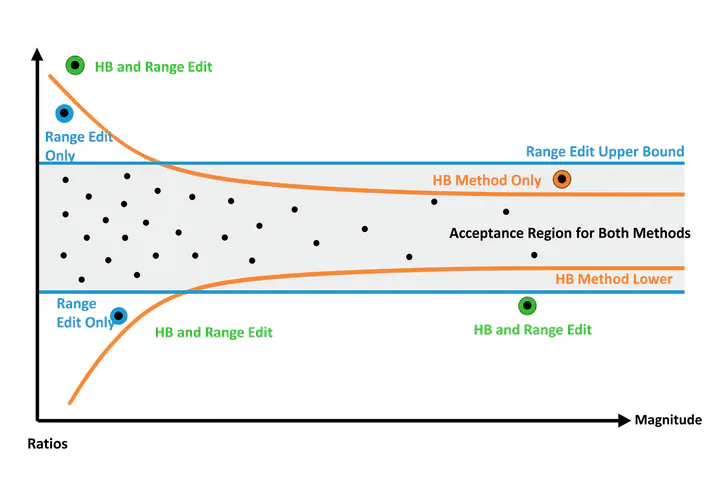 The Hidiroglou-Berthelot (HB-edit) method is a robust and interpretable tool for outlier detection—especially well-suited for longitudinal survey or administrative data where units vary widely in size. With careful parameter tuning and visualization, HB-edit highlights meaningful anomalies without overwhelming analysts with false positives.